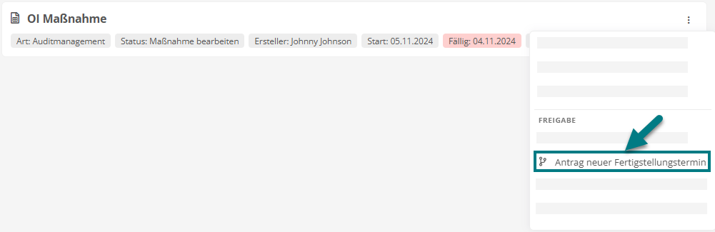 Über die Transition Antrag neuer Fertigstellungstermin und das zugehörige Formular können Sie eine Terminverlängerung für die Maßnahmenumsetzung beantragen.