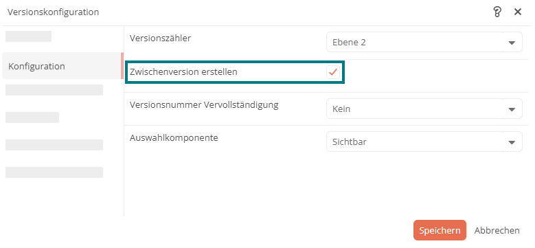 Aktivieren Sie in der Versionskonfiguration im Eigenschaftenbereich Konfiguration die Option Zwischenversion erstellen: