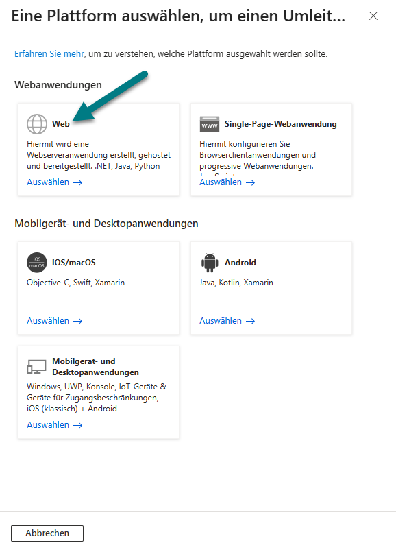 Hinweis: Verwenden Sie bei der Umleitungs-URI die ID, die in der entsprechenden Azure-Authentifizierung in der ServerAdministration vergeben wurde.