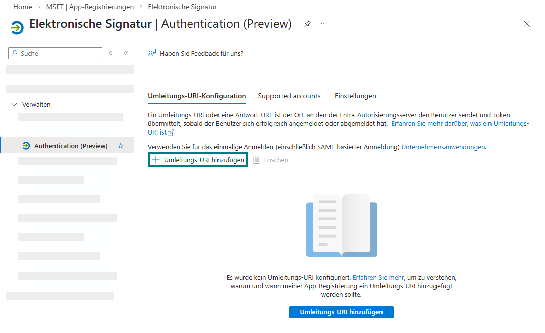 Öffnen Sie den Tab Umleitungs-URI-Konfiguration