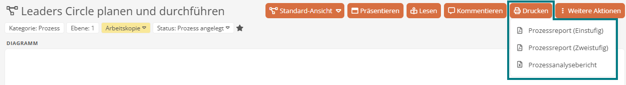 Druckberichte sind in Aeneis 7.5 einfacher erreichbar. Sie wurden vollständig aus dem Menü Weitere Aktionen entfernt. Stattdessen generieren Sie Druckberichte im Content-Bereich des jeweiligen Objekts über eine eigene Schaltfläche.