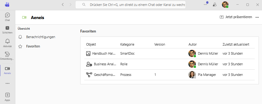 Aeneis-App für Teams: Benachrichtigungen und Favoriten in Echtzeit
