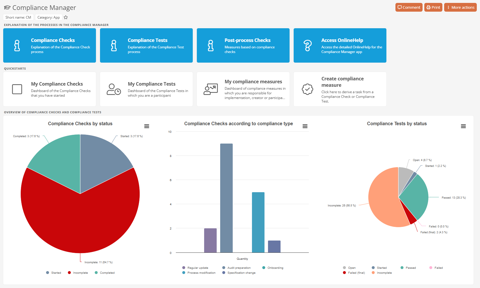 The separate Compliance Manager app also supports management and process owners in analyzing and controlling all compliance activities.